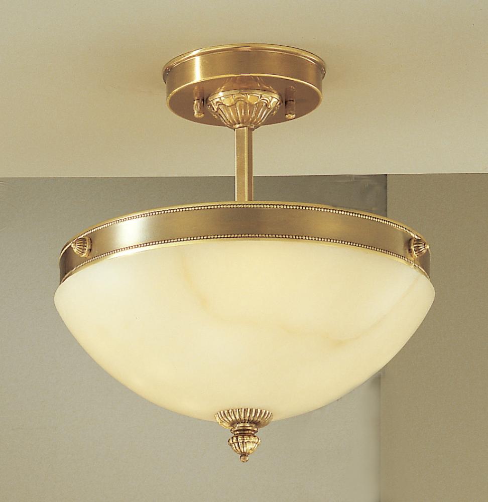 Mallorca 14"Wide x 14"Long x 10"High Lights: 2 x 40W candelabra Finish Shown: Antique Bronze Crystal Shown: n/a Chain or Cable Length: 3 Ship Via: Parcel Shipping Weight: 15 Hanging Weight: 13 Catalog/Page Ref: 5005/189 Large imposing, rich cream alabaster bowl pendants with concealed lights. A dramatic way to light up any room setting