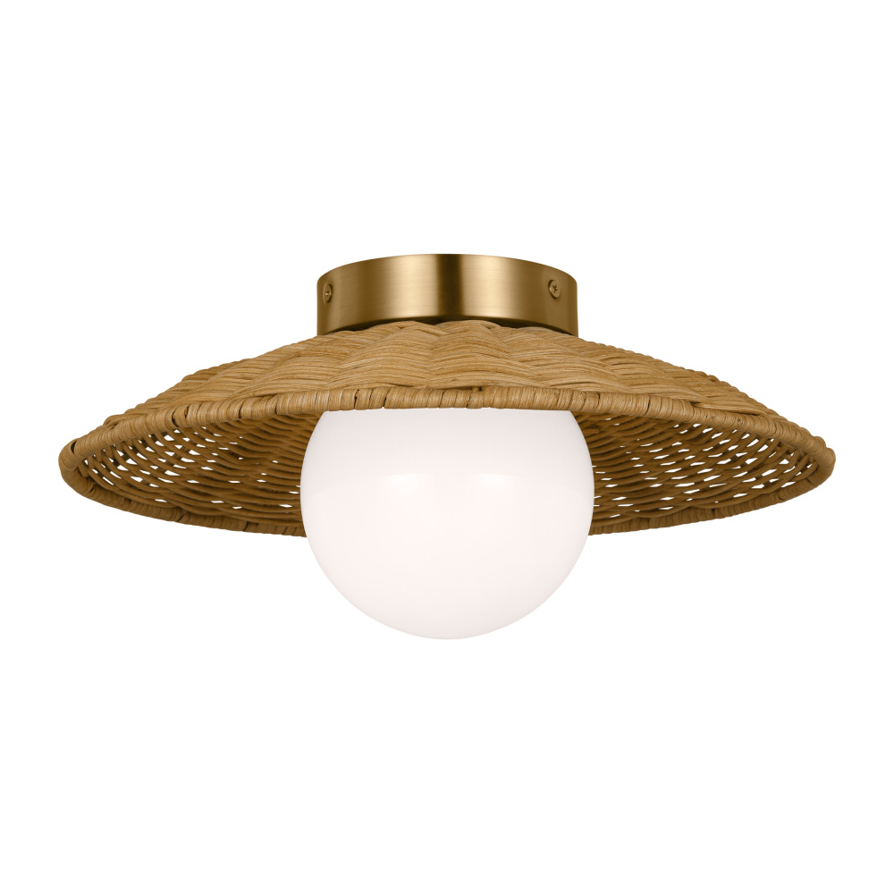 Mari is inspired by rattan handbags from kate spade new york as well as classic 50s and 60s modernist profiles. Hand-woven rattan gives this series an organic, tropical vibe and ensures a warm glow. The golden canopy adds a dash of glamour. Filtering the light from within, each piece creates a play of light and shadow in a room, adding an inviting ambiance. Mari can work with various boho decor and in homes with coastal or farmhouse styling.