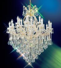 Maria Theresa 36"Wide x 36"Long x 45"High Lights: 19 x 60W candelabra Finish Shown: Chrome Crystal Shown: Crystalique Chain or Cable Length: 6 Ship Via: Parcel Shipping Weight: 87 Hanging Weight: 68 Catalog/Page Ref: 5005/30 The perfect marriage between old and new ... Traditional Maria Theresa chandeliers and wall sconces trimmed with today’s highest quality Swarovski Elements, Spectra or more economical hand cut and polished Crystalique crystal produces a real look of elegance that will last for years to come. All Olde World Gold items illustrated can be ordered in Chrome (CH) finish.