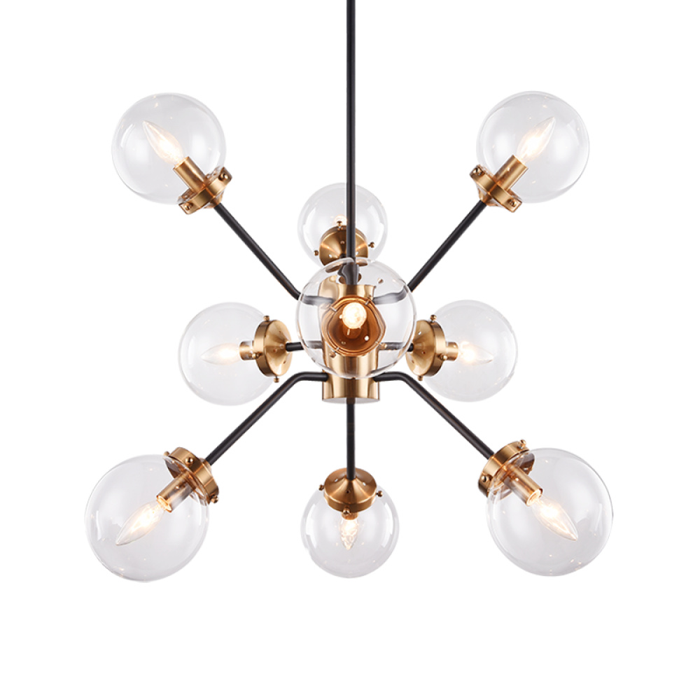 A Mid-Century style that will work with many décors. The series comes in two finishes, Aged Gold Brass and Chrome with Matte Black accents. The finished look can be completely different whether you choose opal or clear glass. The fixtures include a 2-inch rod that you can convert to semi-flush pieces instead of a chandelier. This series can brighten any room with its timeless style and versatile design.