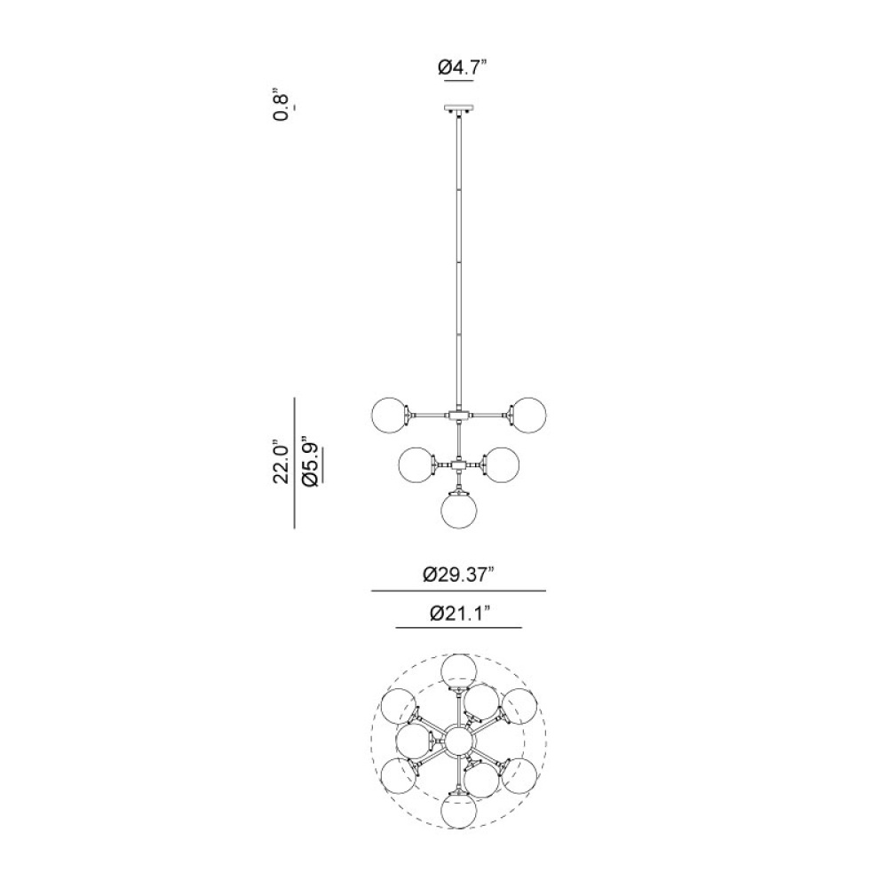 A Mid-Century style that will work with many décors. The series comes in two finishes, Aged Gold Brass and Chrome with Matte Black accents. The finished look can be completely different whether you choose opal or clear glass. The fixtures include a 2-inch rod that you can convert to semi-flush pieces instead of a chandelier. This series can brighten any room with its timeless style and versatile design.