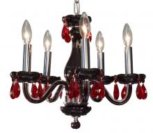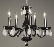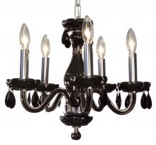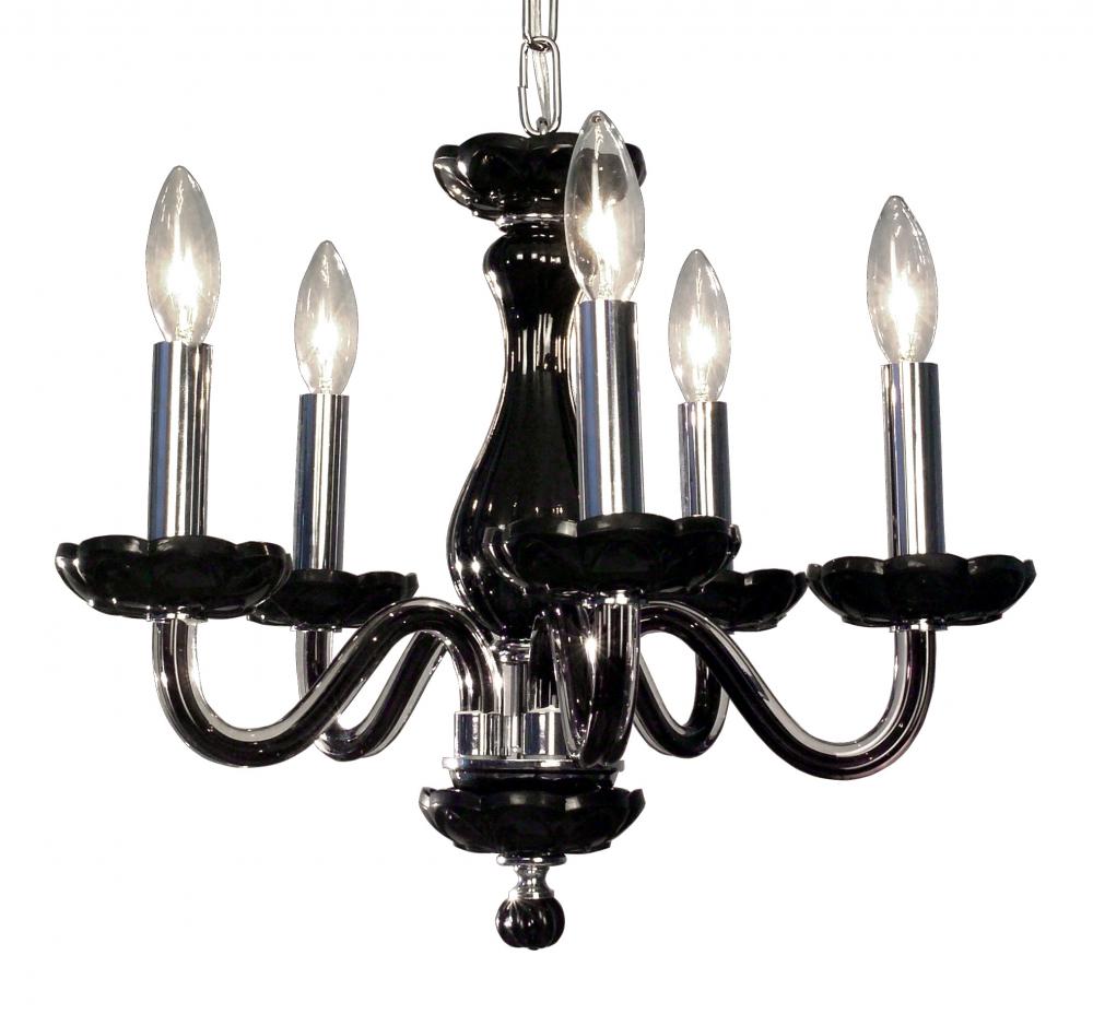 Monaco 17"Wide x 17"Long x 16"High Lights: 5 x 40W candelabra Finish Shown: Black Crystal Shown: n/a Chain or Cable Length: 3 Ship Via: Parcel Shipping Weight: 13 Hanging Weight: 9 Catalog/Page Ref: 5410/14-16 The Monaco series are petite chandeliers having a simple elegance that will blend with most decors, but with eye-catching color options that POP. The lead crystal arms are coated on the inside with color to add a certain flare. Choose no crystal trim if the look desired is clean simplicity, or add colored crystal to slant the look toward traditional opulence. Frames are European-Made.