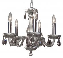 The Monaco series are petite chandeliers having a simple elegance that will blend with most decors, but with eye-catching color options that POP. The lead crystal arms are coated on the inside with color to add a certain flare. Choose no crystal trim if the look desired is clean simplicity, or add colored crystal to slant the look toward traditional opulence. Frames are European-Made.