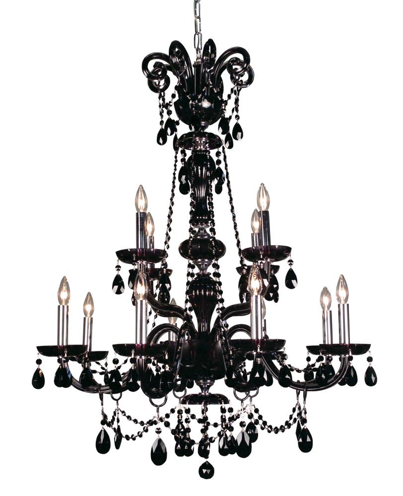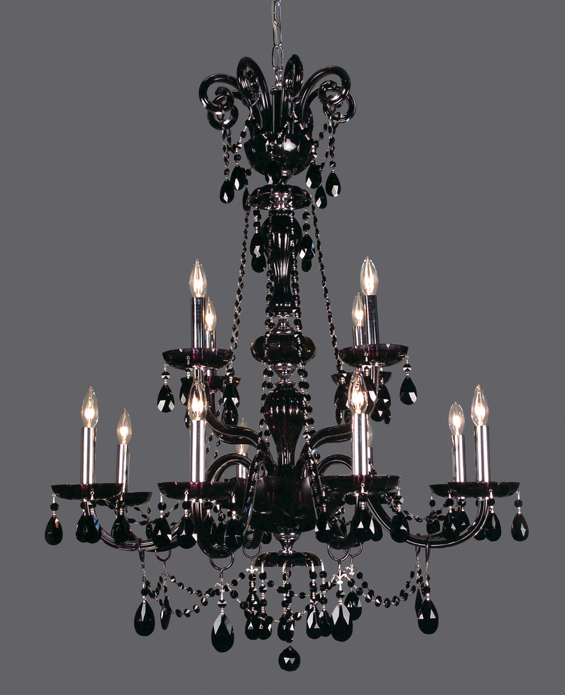 Monte Carlo Elite 33"Wide x 33"Long x 42"High Lights: 12 x 60W candelabra Finish Shown: Black Crystal Shown: Crystalique Black Chain or Cable Length: 6 Ship Via: TRUCK Shipping Weight: 41 Hanging Weight: 35 Catalog/Page Ref: 070621/4 The striking elegance and sleek lines of the Monte Carlo series will make a bold statement, whether it is used in a casino, Hotel, Grand Ballroom, or an upscale home. This rich look is achieved by combining high quality clack crystal, either Crystalique Black or flawless Swarovski Elements Jet, with lead crystal frames internally treated with a translucent black effect. Make a statement with Monte Carlo. This is a more elaborate crystal trim than the Monte Carlo.