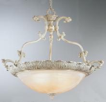 Montego Bay 32"Wide x 32"Long x 27"High Lights: 4 x 60W candelabra Finish Shown: Roman Bronze Crystal Shown: n/a Chain or Cable Length: 3 Ship Via: Parcel Shipping Weight: 48 Hanging Weight: 44 Catalog/Page Ref: 4500/177 Heavy chased cast solid brass frames are combined with faux alabaster glass for a superior value without compromising design or quality