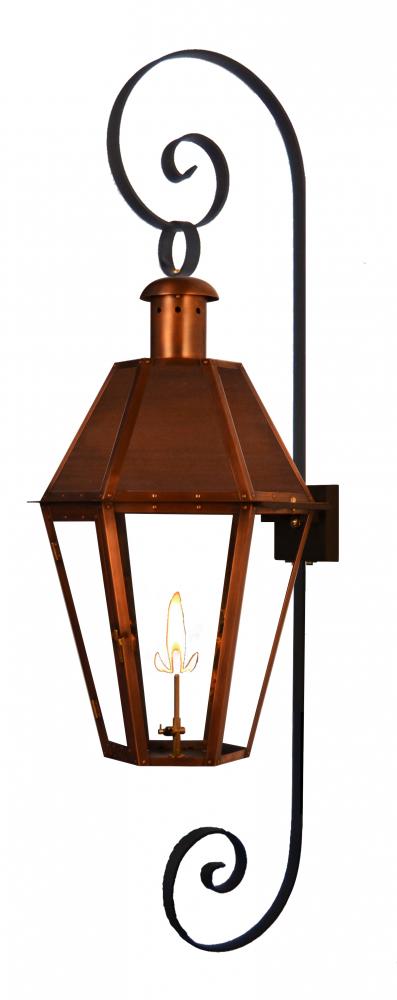 Size 19 Gas Copper Lantern, single gas burner, with Soild Copper Top Panels, Top Scroll, Reverse Bottom Scroll