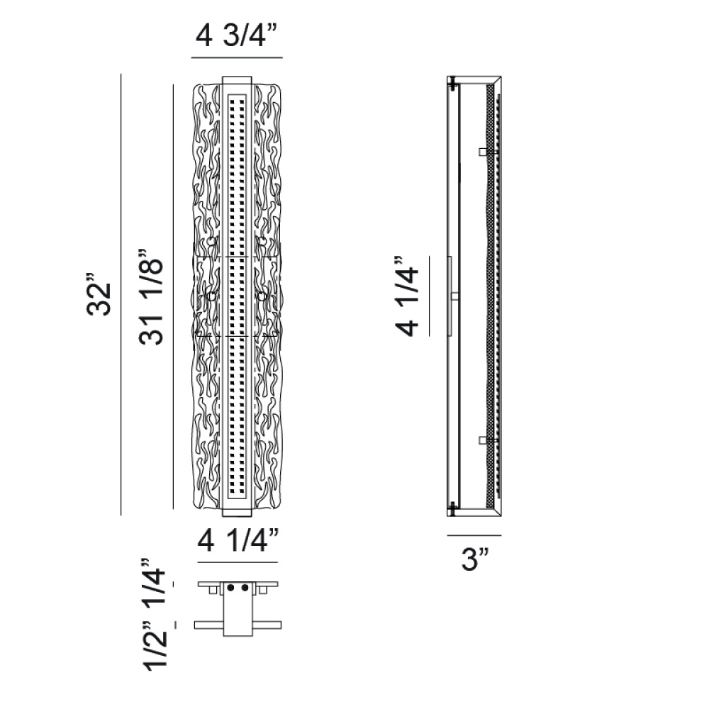 4.75"W x 31.13"H x.25"