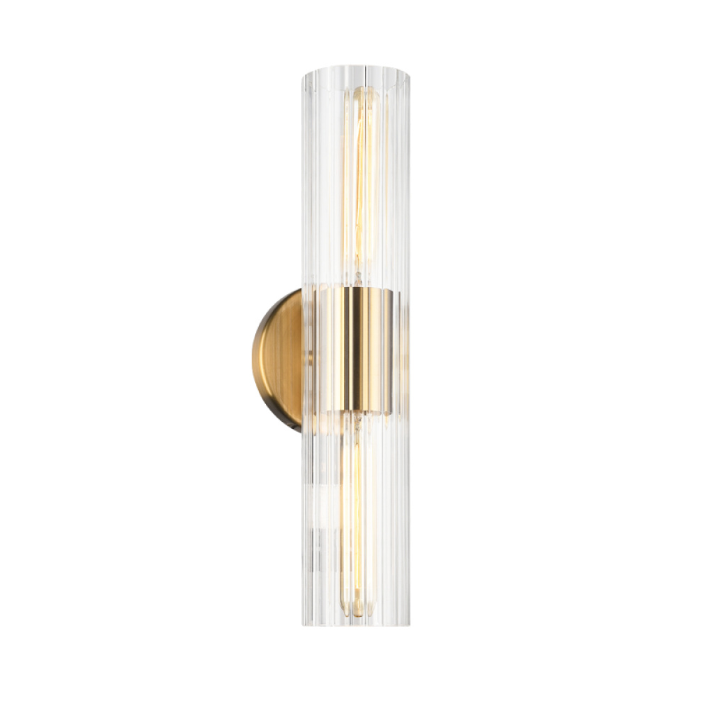 An elegant collection that features intricate detailing of clear ribbed glass. The versatility of this collection allows the fixtures to be mounted vertically and horizontally. Odette is available in 3 finishes: Aged Gold Brass, Black and Chrome as well as 2 sizes; a perfect touch to illuminate any space.