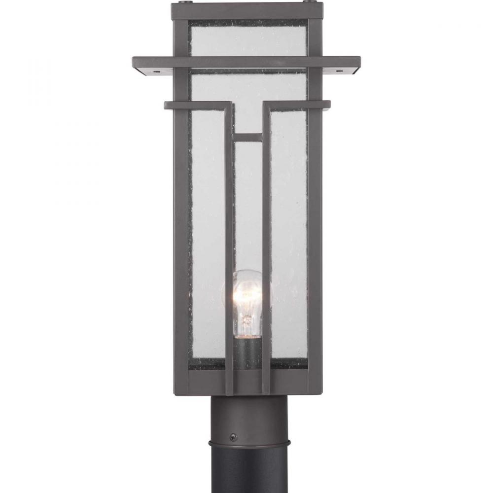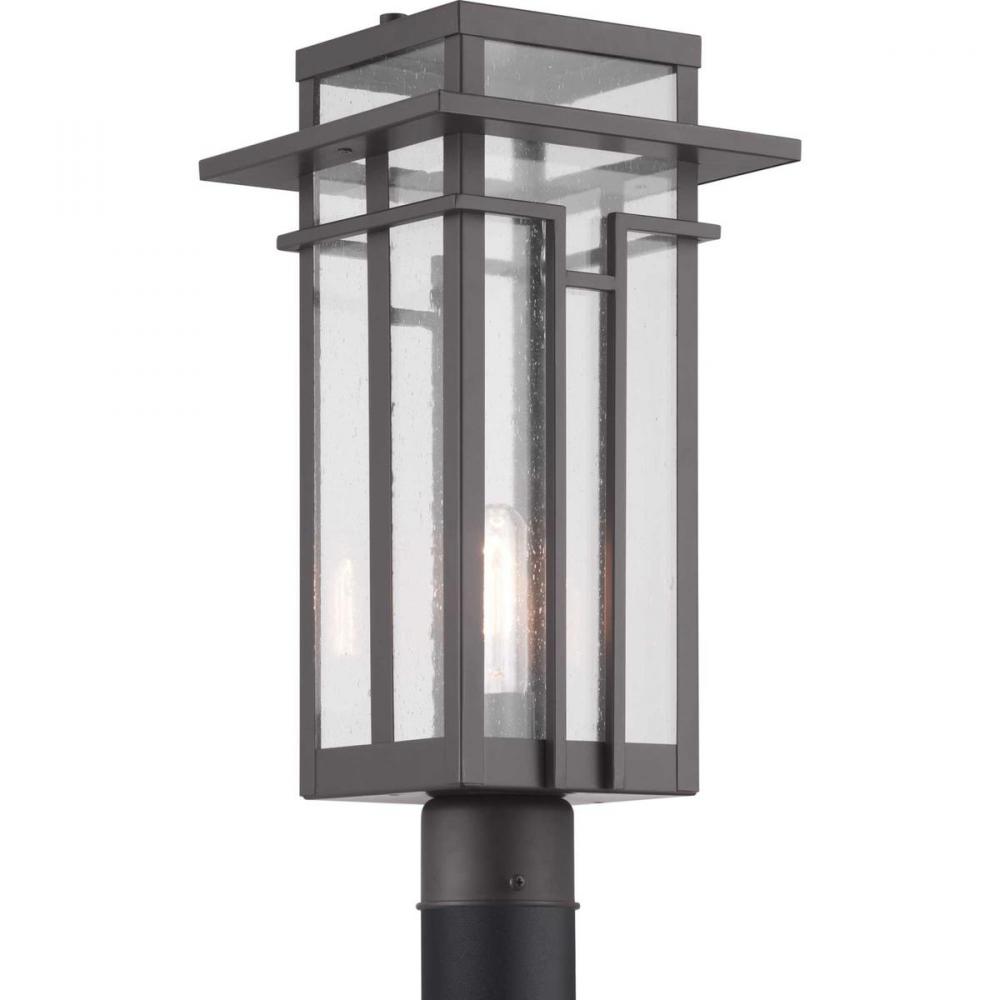 Geometric details in Boxwood’s design enhance Craftsman-inspired architecture. The one-light post lantern features clear seeded glass and finished in Antique Bronze which completes the authentic style.