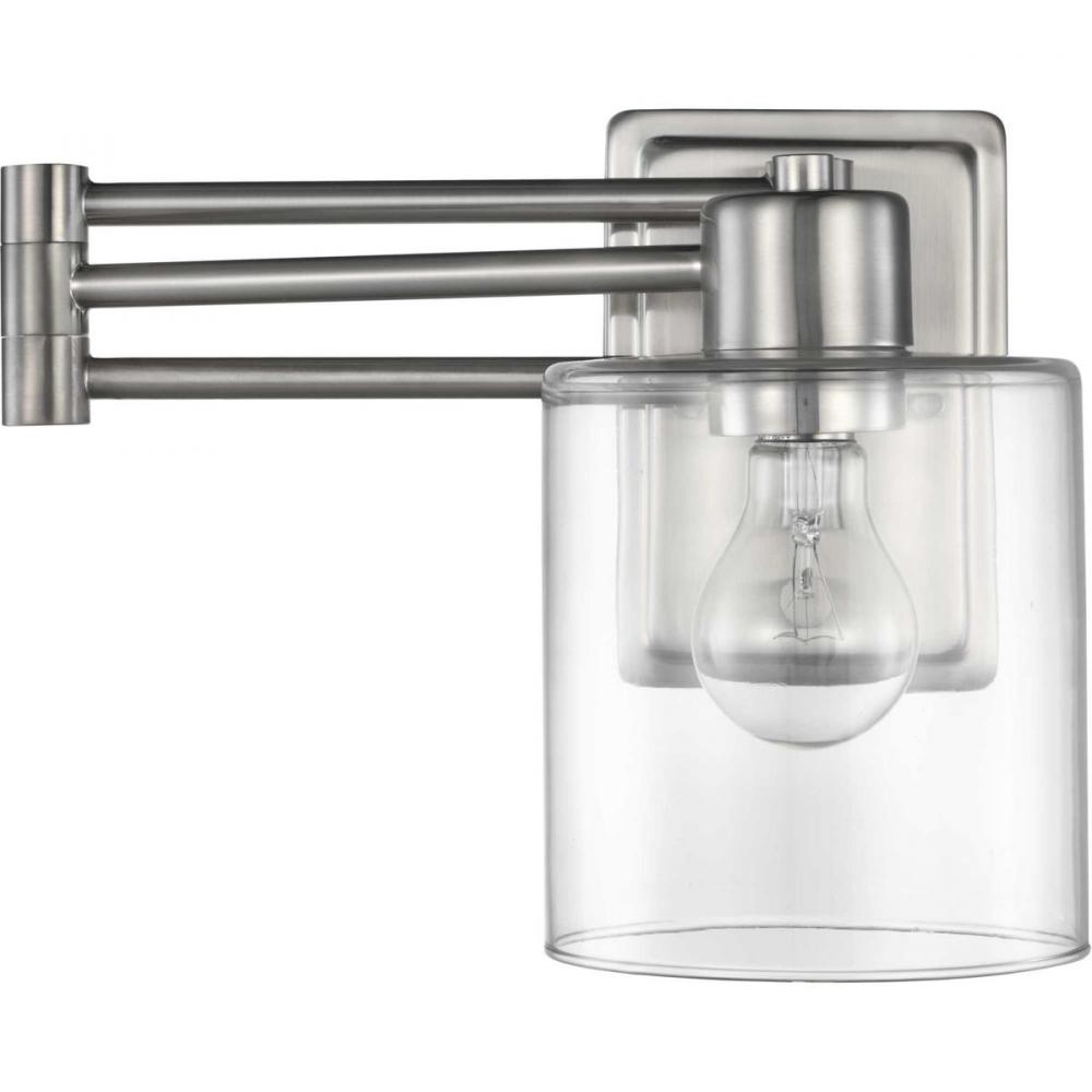 Experience The Comforting Familiarity Of The Classic Components Of This Wall Bracket. Snuggle Up In Bed With A Good Book And Warm Cup Of Tea As The Light Fixture'S Brushed Nickel Swing Arm Provides You With The Lighting Flexibility You Need To Fit Your Lifestyle. A Crisp, Clear Glass Shade Contrasts With The Industrial Backplate.