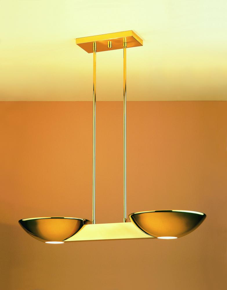 Modern, yet simple stainless steel drop-ceiling fixture featuring direct and indirect halogen illumination.