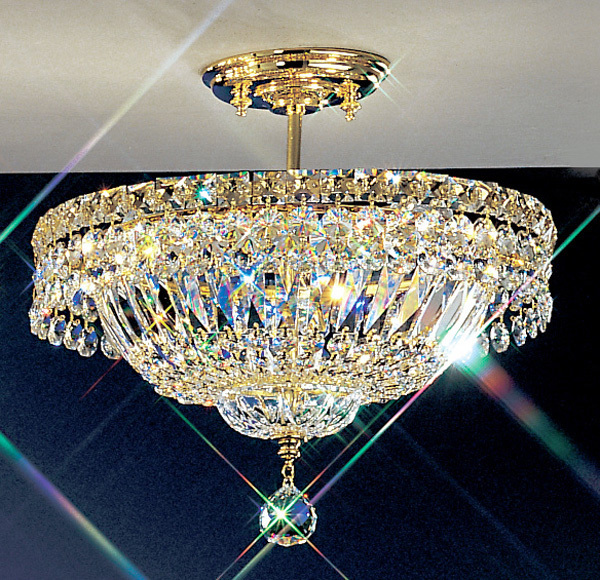 Princess 14"Wide x 14"Long x 13"High Lights: 3 x 60W candelabra Finish Shown: 24k Gold Plate Crystal Shown: Crystalique-Plus Chain or Cable Length: n/a Ship Via: Parcel Shipping Weight: 10 Hanging Weight: 9 Catalog/Page Ref: 5005/101 Transitional styling blends the old with the new. Using traditional “empire” designs but streamlining the form by hiding most of the metal structure that holds the crystal makes this Princess series very versatile and desirable for either contemporary or traditional elegant homes of the new millennium.
