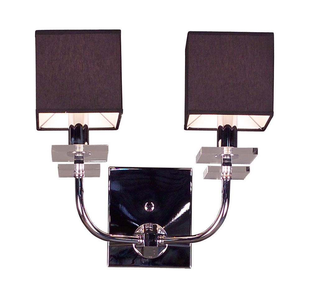Quadrille 14"Wide x 13"High x 6"Deep Lights: 2 x 60W candelabra Finish Shown: Black Crystal Shown: Black Chain or Cable Length: n/a Ship Via: Parcel Shipping Weight: 4 Hanging Weight: 3 Catalog/Page Ref: 5410/71 Overall heights are adjustable, additional wire is available upon request.