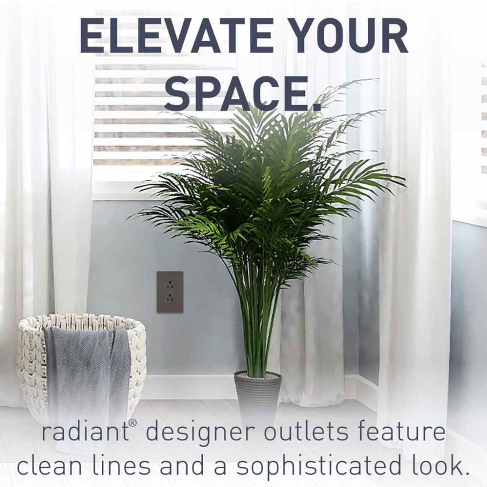 Take a step up from the standard. This duplex outlet installs easily for the basic power every home needs, while elevating your space with the sleek, clean lines of radiant? for a sophisticated look. Made exclusively for use with screwless Wall Plates from the radiant? Collection, sold separately.