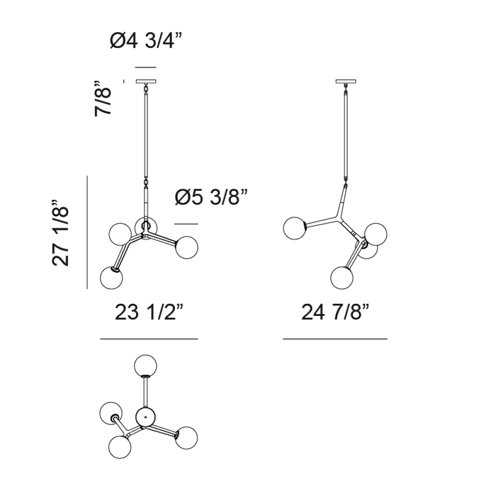 A mid-century inspired series that features branch-like elements with attached Opal Glass. The Rami is a stylish and graceful design that will bring refinement to any room. Available in the form of chandelier, wall sconce, and flush mount