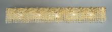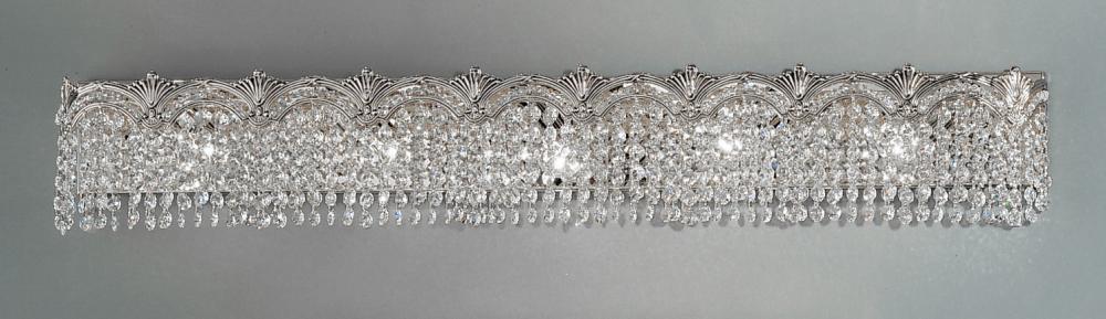 Regency II 39"Wide x 6.5"High x 4"Deep Lights: 5 x 60W candelabra Finish Shown: Chrome with Black patina Crystal Shown: Crystalique-Plus Chain or Cable Length: n/a Ship Via: Parcel Shipping Weight: 17 Hanging Weight: 16 Catalog/Page Ref: 5005/96 These chandeliers and matching sconces infuse elegance to any room whether it is the grand foyer, the formal dining room, the powder room or any other room waiting to be dressed.