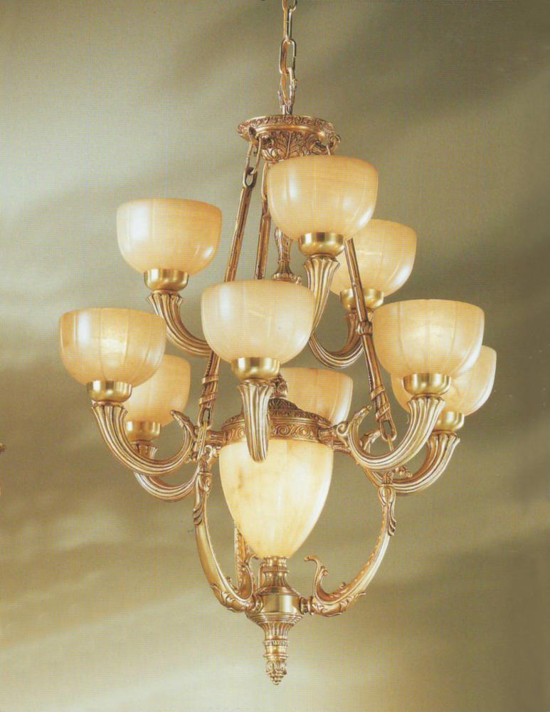 Rembrandt 26"Wide x 26"Long x 38"High Lights: 11 x 60W candelabra (G16 1/2 round) Finish Shown: Satin Bronze with Sienna Patina Crystal Shown: n/a Chain or Cable Length: 3 Ship Via: Parcel Shipping Weight: 80 Hanging Weight: 60 Catalog/Page Ref: 4601/9 European made solid brass fixtures with unique antique painted multi-toned metal body, complemented with cast swan arms, top crown and laurel leaf accents held together by cast chain links. Cast parts are finished in satin bronze with sienna patina. Frosted glass shades complete the ensemble. Note that the painted parts can be customized upon request.