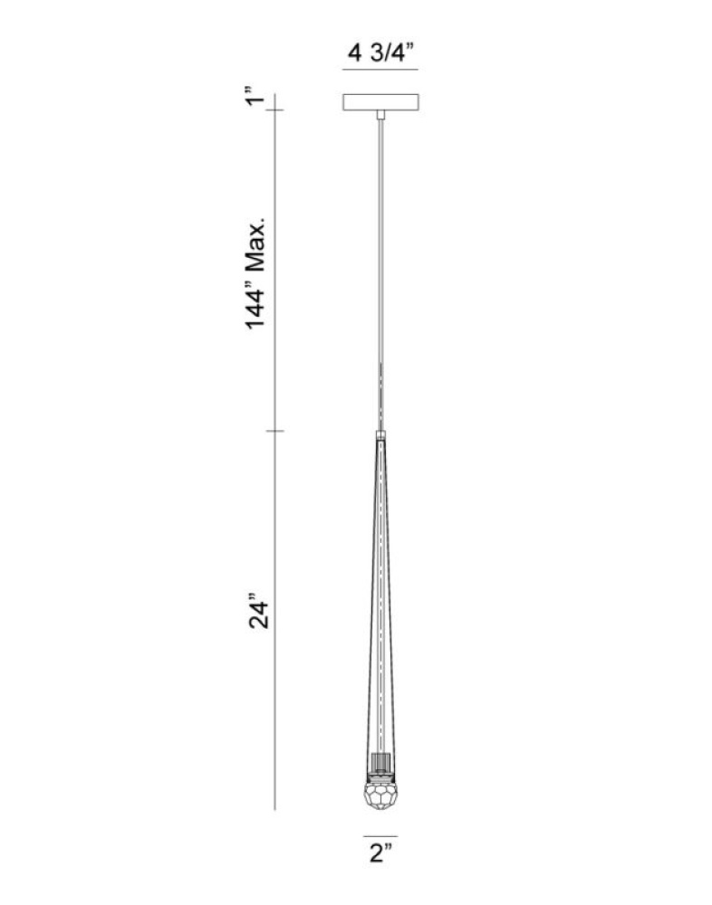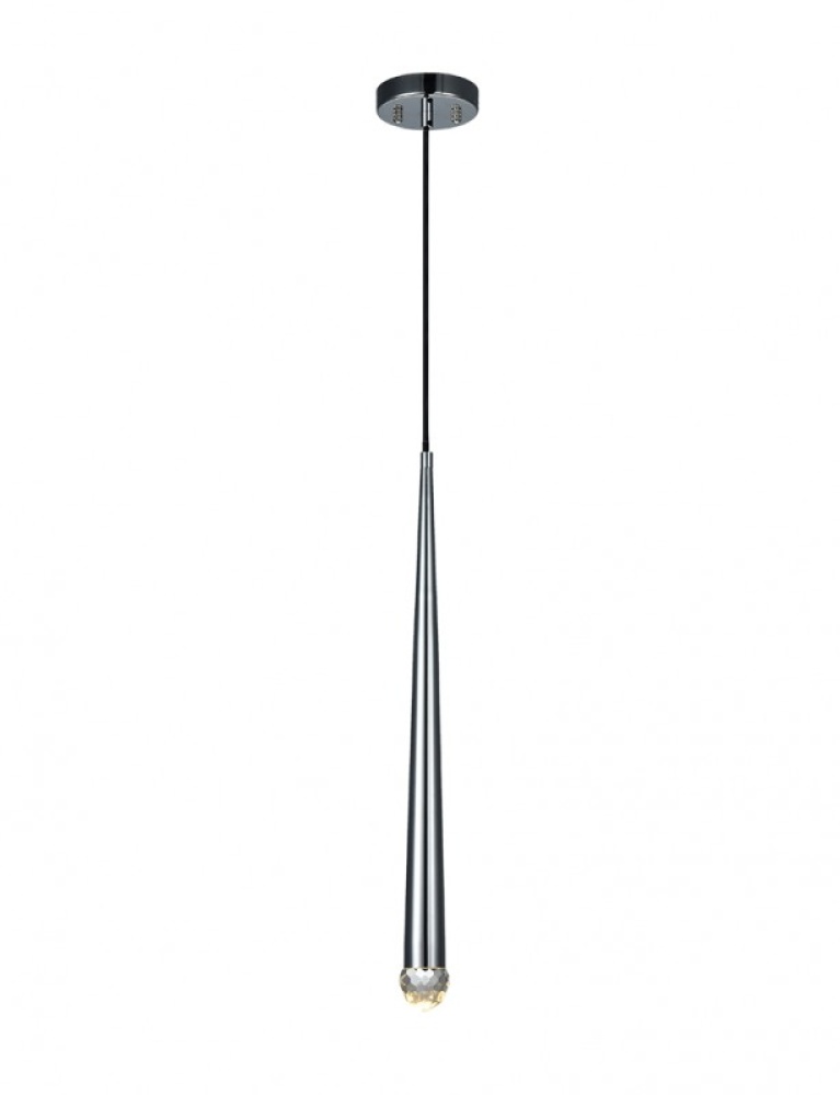 A modern cascading LED pendant offered in a Matte Black Finish and a Chrome finish. This collection has a contemporary feel with added interest in the detailed glass shade. Both finishes have a black fabric cord to complete the style.