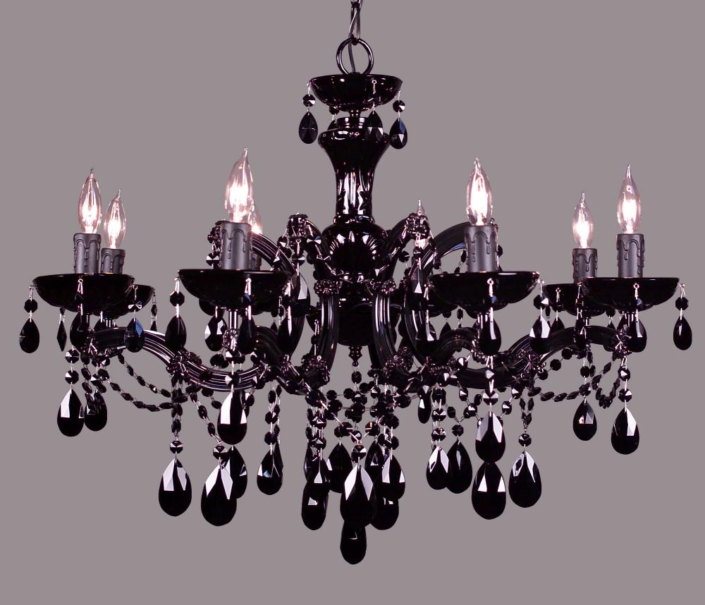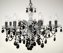 Rialto Traditional 28"Wide x 28"Long x 21"High Lights: 8 x 60W candelabra Finish Shown: Black on Black Crystal Shown: Crystalique Black Chain or Cable Length: 3 Ship Via: Parcel Shipping Weight: 27 Hanging Weight: 24 Catalog/Page Ref: 5410/48 This version remains true to the original traditional Maria Theresa design and crystal trim. It is a better complement to the more conventional decorating schemes. It is trimmed with Crystalique- Plus™ as the standard trim. To achieve a lower price point, the rosettes and panels are make of high quality acrylic rather than the traditional glass.