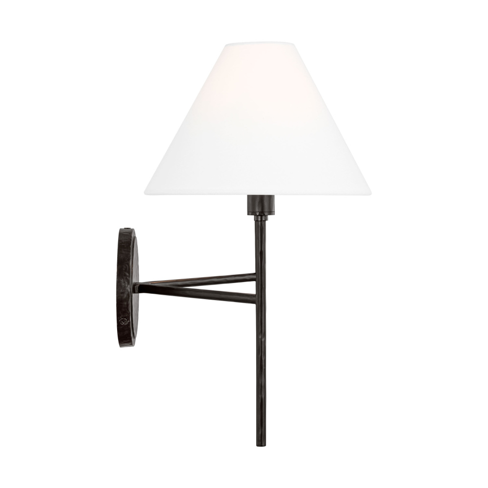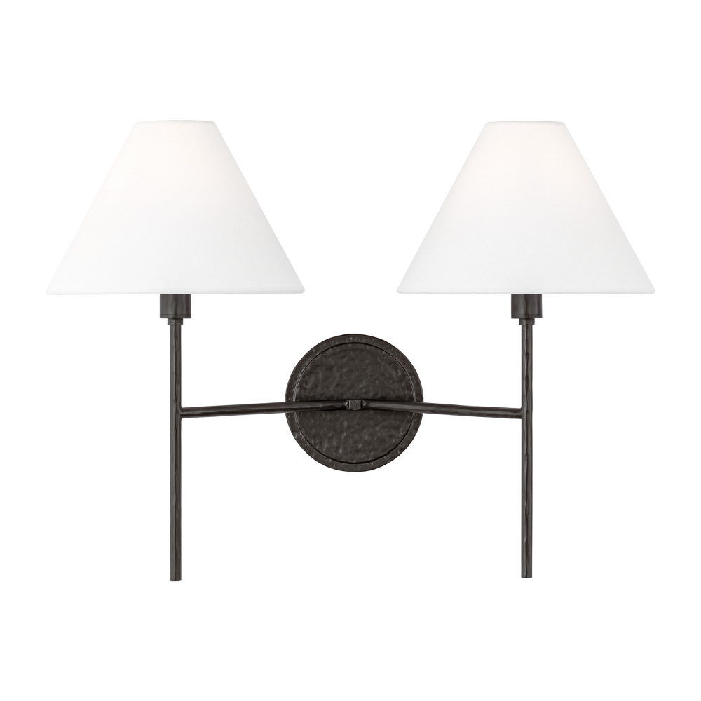 Crafted with Steel in a Aged Iron finish with white linen fabric shades