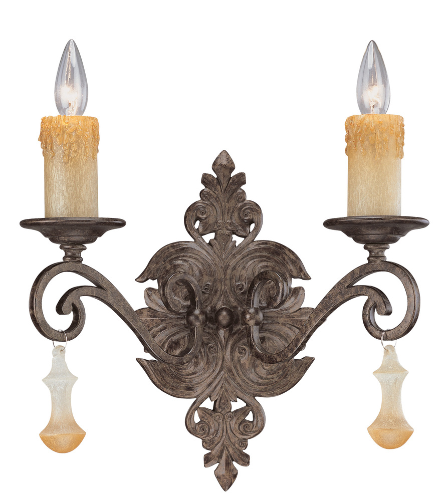 Riviera 15"Wide x 14"High x 8"Deep Lights: 2 x 60W candelabra Finish Shown: Tortoise Shell Crystal Shown: n/a Chain or Cable Length: n/a Ship Via: Parcel Shipping Weight: 8 Hanging Weight: 7 Catalog/Page Ref: 5410/79 Lost wax style open columns, oversized drip candle slips and removable glass bobbles combine with beautiful metalwork to make the Riviera series unique.