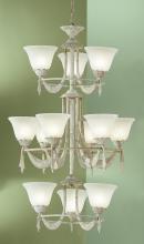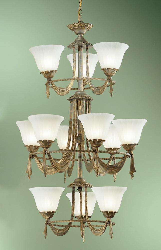 Saratoga 28"Wide x 28"Long x 47"High Lights: 12 x 60W standard Finish Shown: Weathered Gold Crystal Shown: n/a Chain or Cable Length: n/a Ship Via: Parcel Shipping Weight: 31 Hanging Weight: 35 Catalog/Page Ref: 4500/187 Combine die cast frames of drape design with jewelry-like necklace trim and alabaster glass shades at attractive prices and you have a winning collection.