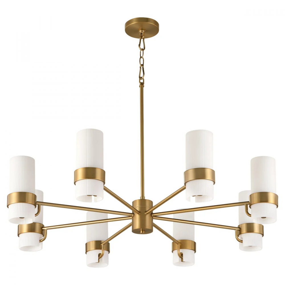 The Sojourn Series combines confident transitional design with subtle nods to the past. Featuring candle-like white milky glass pillars bisected by a modern bobeche, this fixture balances contemporary lines with a touch of nostalgia reminiscent of early gas fixtures. Finished in brushed brass, the Sojourn Series brings timeless elegance and versatility to modern and transitional spaces alike. Let the Sojourn Series transform your next project with its exceptional wall mounts, vanities, and chandeliers, each crafted to bring refined character to any space.