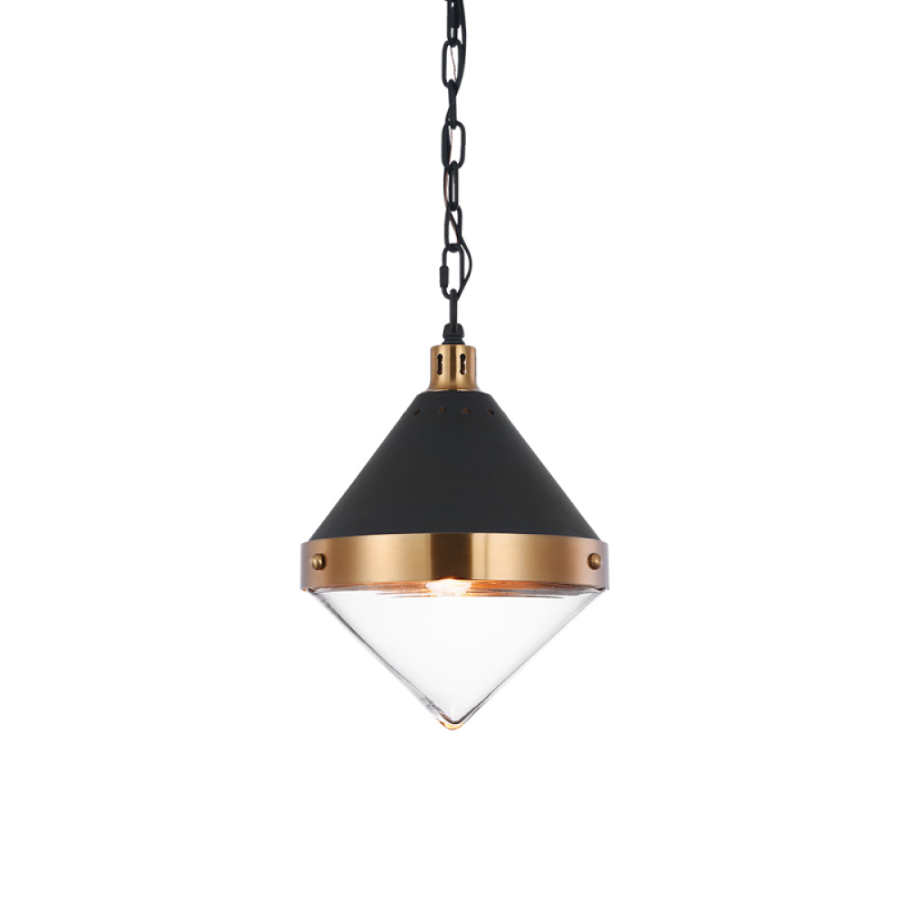 A fusion design that combines medieval style with modern elements. Sphericon is available in Matte Black with Aged Gold Brass or Matte Black with Chrome. Both colour options are complete with a clear glass shade or an opal glass shade. LIGHTBULBS NOT INCLUDED