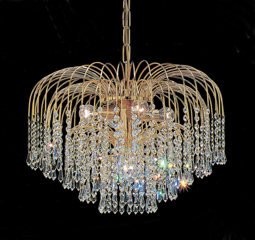 Sprays 20"Wide x 20"Long x 14"High Lights: 3 x 60W candelabra + 1 x 60W standard Finish Shown: 24k Gold Plate Crystal Shown: Crystalique-Plus Chain or Cable Length: 3 Ship Via: Parcel Shipping Weight: 26 Hanging Weight: 23 Catalog/Page Ref: 5005/131 24k gold plated sprays lavishly trimmed with showers of shimmering crystal jewels and spears.