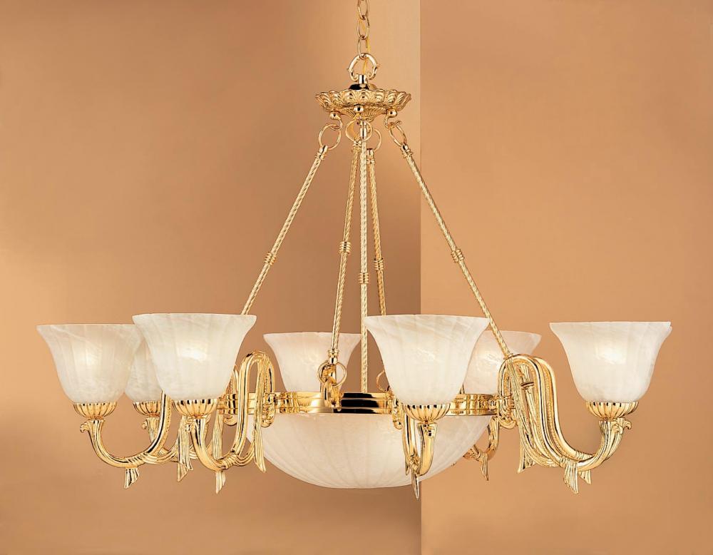 St. Moritz 44"Wide x 44"Long x 30"High Lights: 8 x 60W standard + 3 x 60W Candelabra Finish Shown: Gold Crystal Shown: n/a Chain or Cable Length: n/a Ship Via: Parcel Shipping Weight: 62 Hanging Weight: 54 Catalog/Page Ref: 4500/136 Cast solid brass frames with white cloud glass.