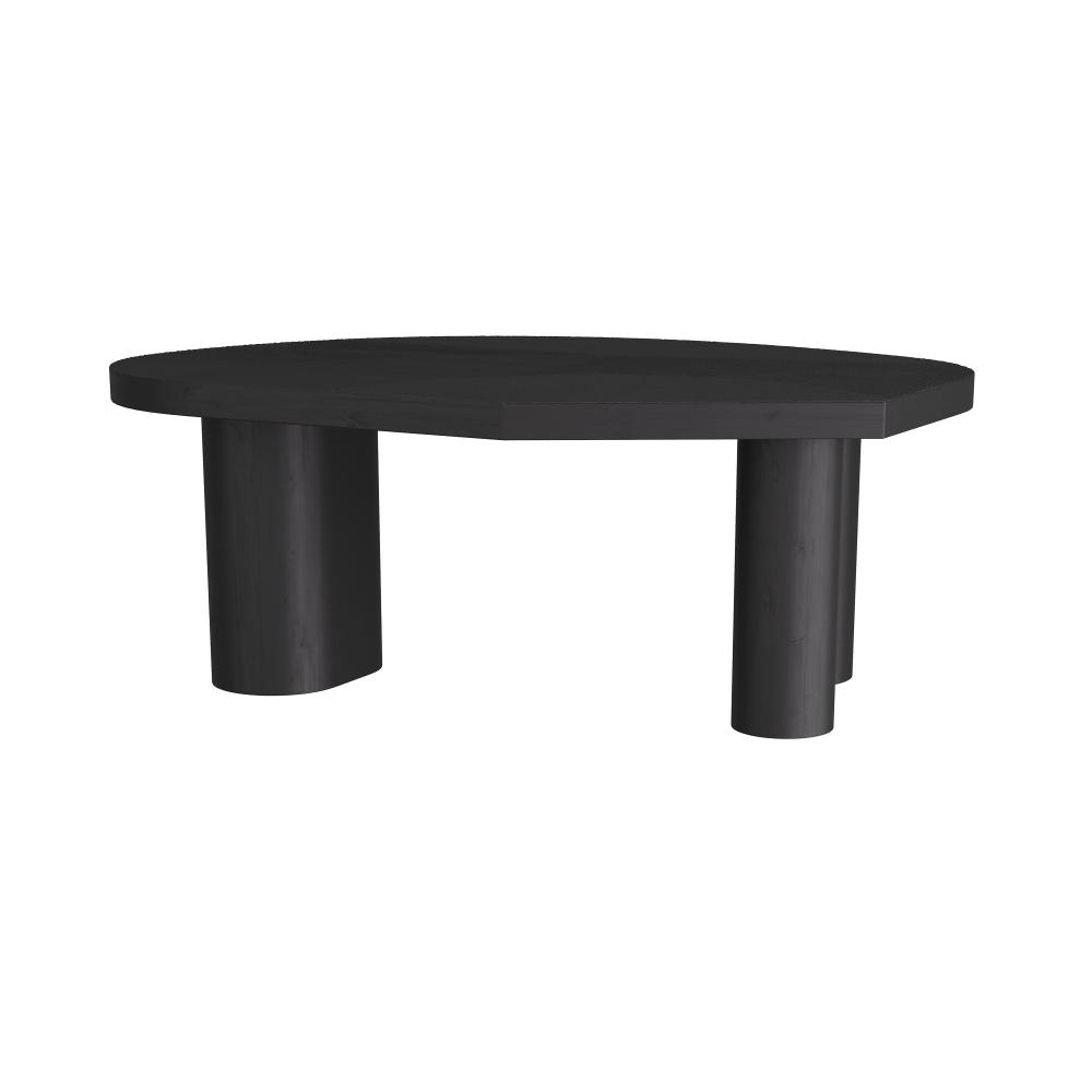 The Tribal Coffee Table has three distinct carved textures on a heavy mango wood slab whose weight is born on three large drum-like legs. The Tribal is both modern and primitive – an ebony sculpture that grounds the center of any interior.