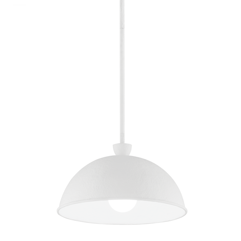 Tygo starts with the finish. There's perfection in the imperfection of the hand-applied Verdigris or White Gesso finish, both add gorgeous texture and a handmade quality that makes this dome pendant stand out. Light fills the interior of the shade with a warm glow adding to the fixture's organic feel.
