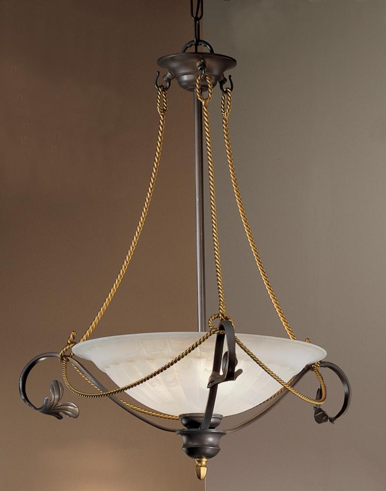Verona 24"Wide x 24"Long x 12"High Lights: 3 x 60W candelabra Finish Shown: Bronze Crystal Shown: n/a Chain or Cable Length: n/a Ship Via: Parcel Shipping Weight: 16 Hanging Weight: 14 Catalog/Page Ref: 4500/208 The Verona series comes from Northern Italy. A place where craftsmen skilled in the art of hand forging metal and blowing glass abound. This collection of charming yet affordable wrought iron and faux "alabaster" glass fixtures will fit the bill where traditional ironwork lighting is needed.