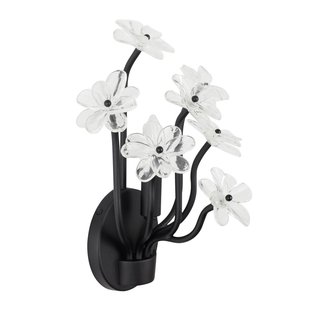 Hand-forged Recycled Steel. Handmade Recycled Glass Flowers. Available in Gold Dust with Artifact Accents or Matte Black Finishes.