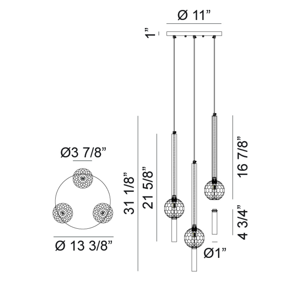 3 LT 11" "WINDCHIMER" AGED GOLD CHANDELIER
