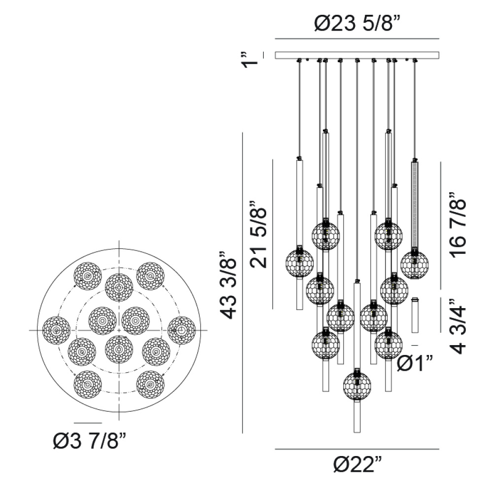 12 LT 22" "WINDCHIMER" AGED GOLD CHANDELIER